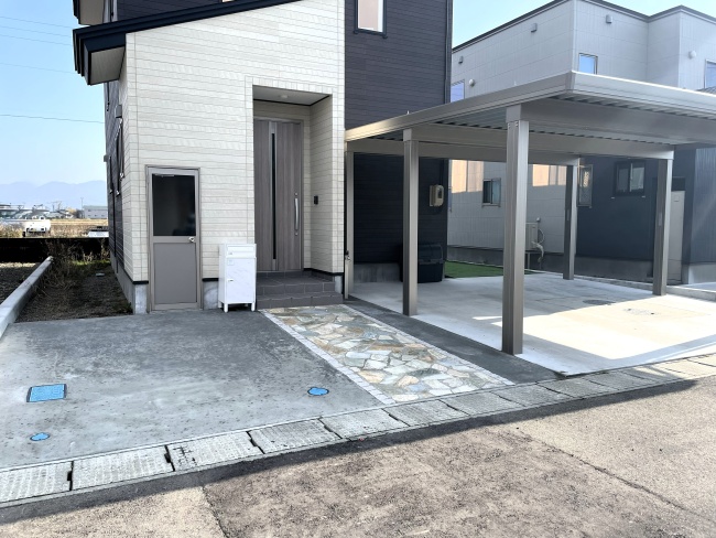 デザイン性だけでなく、雪国ならではの機能性も追求しました。表面に程よいざらつきがある石材を選ぶことで、雨や雪の日でも滑りにくく、毎日の出入りを安全にサポートします。