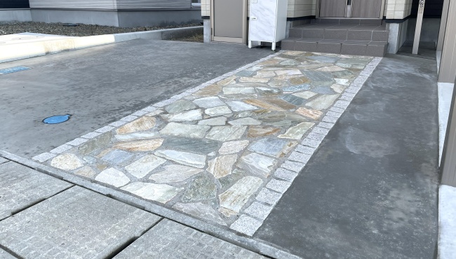 1. 表情豊かな天然石の玄関アプローチ